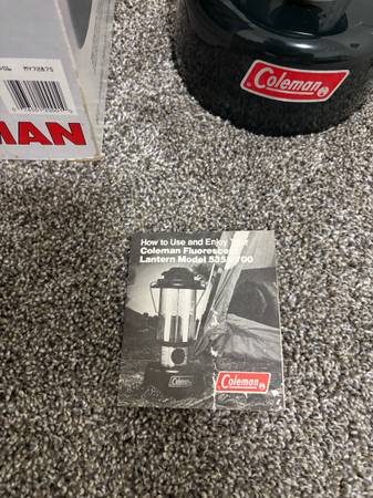 I have a 1986 Coleman Camping Lantern vintage retro antique light. Comes with original box, manual and 12 volt cigarette plug adapter. Great for a gift or decorative statement piece for nostalgia....