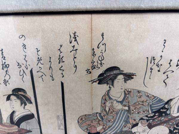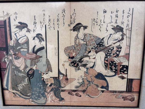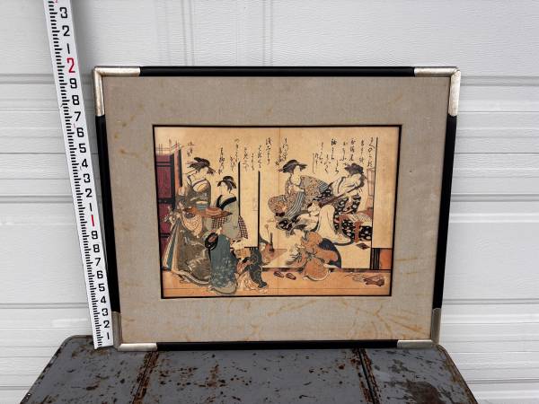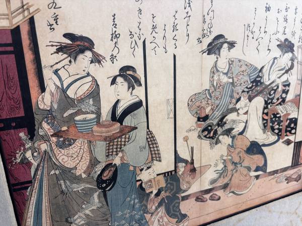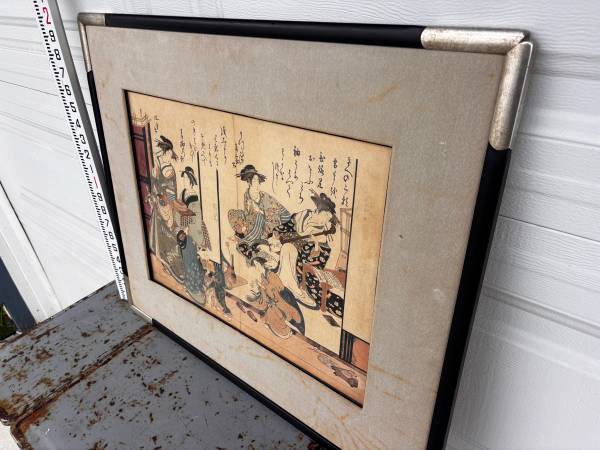 Antique Woodblock Japanese Print from 1784 Kitao Masanobu Amazing Colors ready to hang. 29" x 24". This piece is 241 years old.