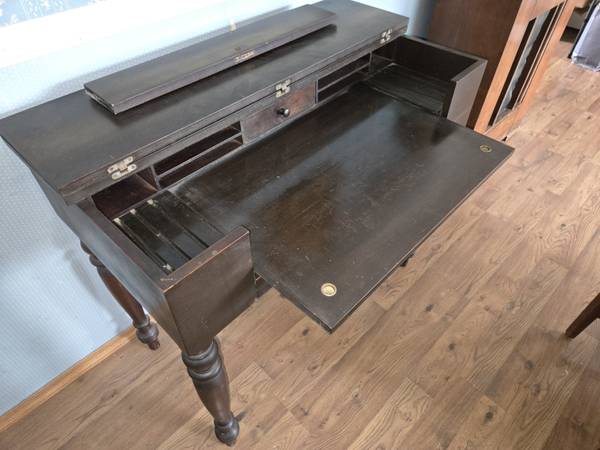 For sale: a charming antique writing desk that brings character and history to any space. Featuring elegant craftsmanship, rich wood tones, and classic detailing, this desk offers both beauty and functionality. It’s perfect as a workspace, display piece, or statement addition to a vintage-inspired room. Well-maintained and full of old-world charm, it’s ready for its next home. Let me know if you’d like to schedule a pickup!