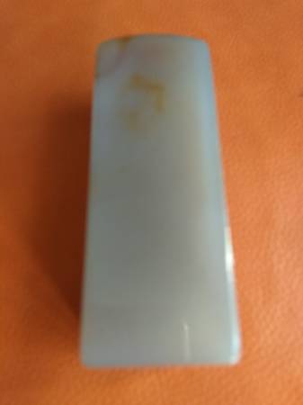 This fantastic celadon jade seal is actually much more beautiful than that shown in the photo, about 80 mm tall and 30 mm wide. Never engraved. Price firm, cash only.