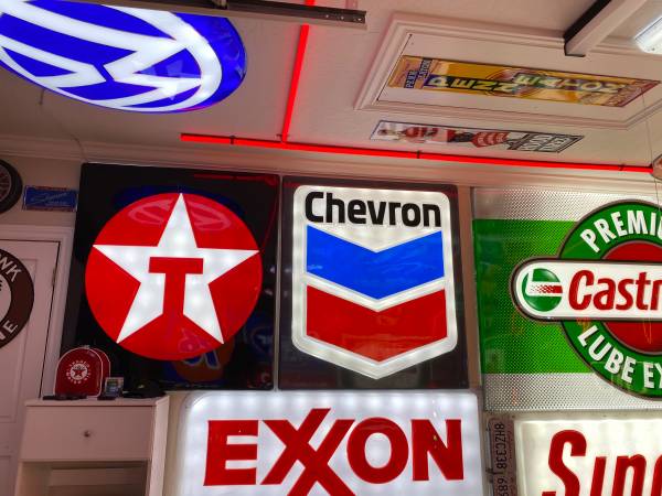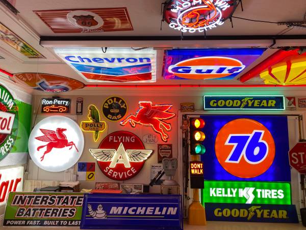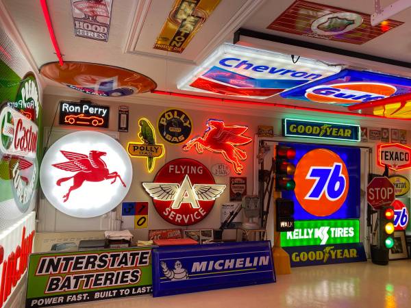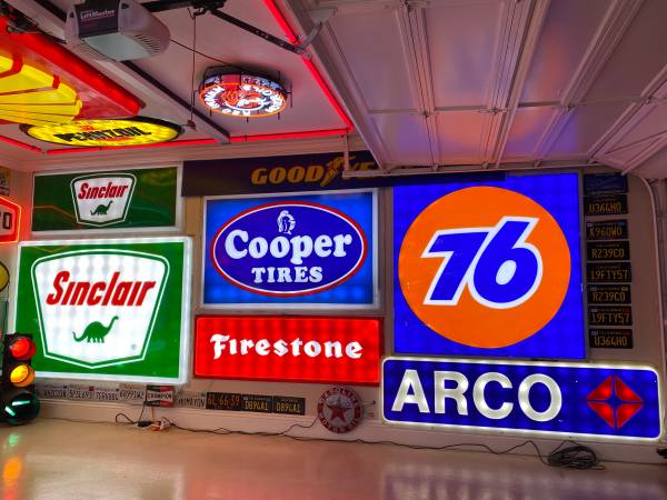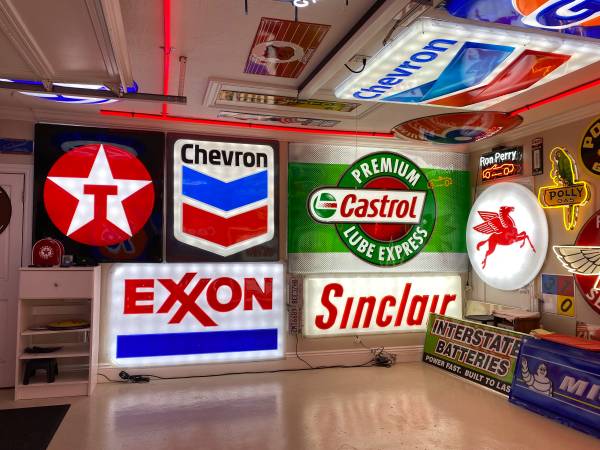 For sale as a collection only. Not interested in selling single signs. 95% of these signs are back lit and ready to upgrade your mancave or your collector car warehouse or showroom.