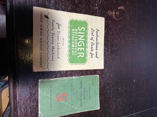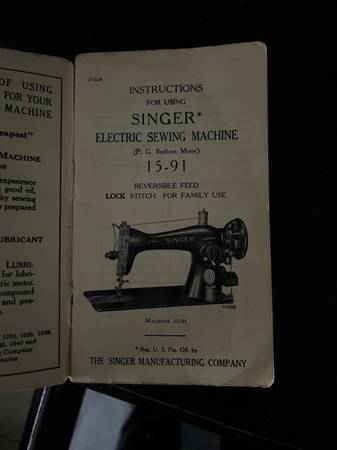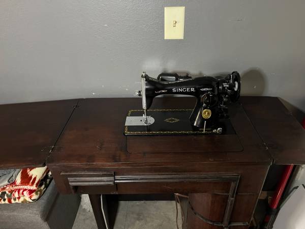 Sewing machine with foot pedal. Original owner, fully functional. Needs new power cable (available at Amazon)