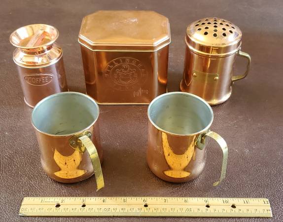 5 Copper Items. Some Coppercraft Guild 2 mugs. 1 tin. 1 cheese shaker 1 Coffee tin. See my other great items and copper items!