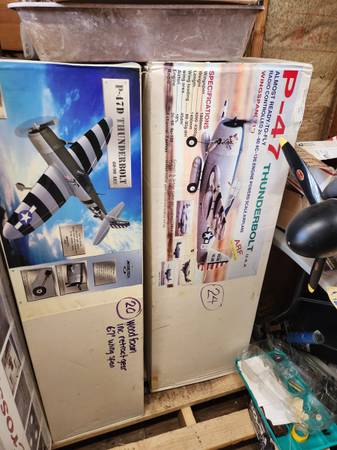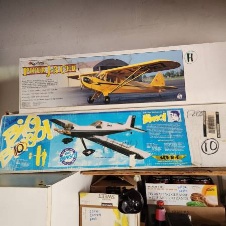 RC COLLECTION FROM A PREVIOUS HOBBY STORE OWNER, ENTIRE INVENTORY FOR SALE INCLUDES APPROXIMATELY 28 LARGE SCALE ARF'S, BRAND NEW IN BOXES, 19 PARTIALLY BUILT PLANES , AND 10 BALSA WOOD KITS, APPROXIMATELY 60 ENGINES, , RETRACTS, SERVOS, ACCESSORIES SUCH AS LANDING LIGHTS, HARDWARE, FASTENERS, DECALS,HEAT GUNS, IRONS, BALANCERS, FUEL PUMPS, SPINNERS, COWLS, APPROX. 200 PROPELLERS, SOME BIELAS, FASTENERS, PAINT, PAINT SPRAYERS, RECEIVERS, ADHESIVES, DOOR GEARS, STARTERS, MISC. RELATED ITEMS.. WILL CONSIDER INDIVIDUAL SALES , prices vary