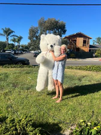Big teddy bear, around 5.6 tall. Has a strap in front easy to fix