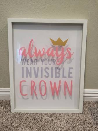 This cute girls bedding comforter/quilt set is in excellent condition (recently cleaned, still in bag). It is reversible. Shams, 2 sets of sheets, full sized blanket, extra accent pillows, and framed wall art are included. Made of 100% cotton. Brand is Kennedy, design is Sheringham Road. Fits a full bed. From a smoke free home. Asking $40.