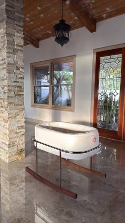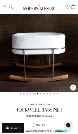 Monte Designs -Modern Nursery Rockwell Bassinet (33 L X 23 W X 25 H) Chrome stand with solid walnut rocking feet is beautifully contrasted to the soft upholstered basket that can be removed and...