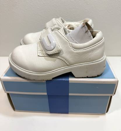Adorable white MODIT dress shoes, perfect for a child's baptism, communion, or any special occasion.
