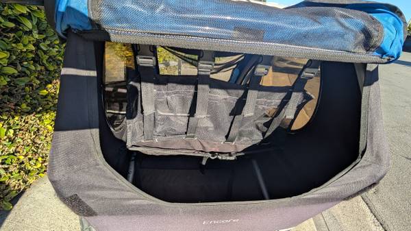 Burley Encore 2 bike trailer. $300 obo Fits two children with seatbelts inside + gear area in back. Used for our little guy who has now grown out of it. Good condition, works great, garage stored...