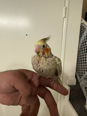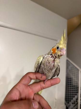 Sweet and healthy 6-week-old baby cockatiels looking for a loving home. Hand-raised and very tame, already starting to nibble on seeds and pellets. Still needs a bit of hand-feeding, so experience with baby birds is preferred. Will grow up to be a friendly and playful companion