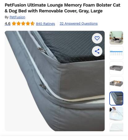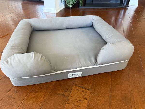 PetFusion Ultimate Lounge Memory Foam Bolster Cat & Dog Bed with Removable Cover, Gray, Large