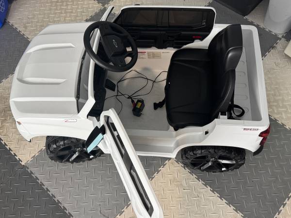 Kids' Electric Single Seat Ride On Car to Drive, LED Lights, MP3 Music, Back Storage, White Chevy
