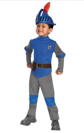 Mike the Knight medieval knight costume for toddlers. Fits toddlers size 3T and 4T. Perfect for Halloween. Worn only once. Includes original packaging and all items.