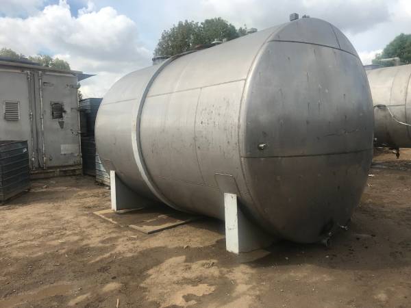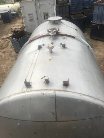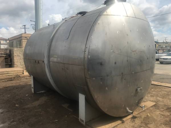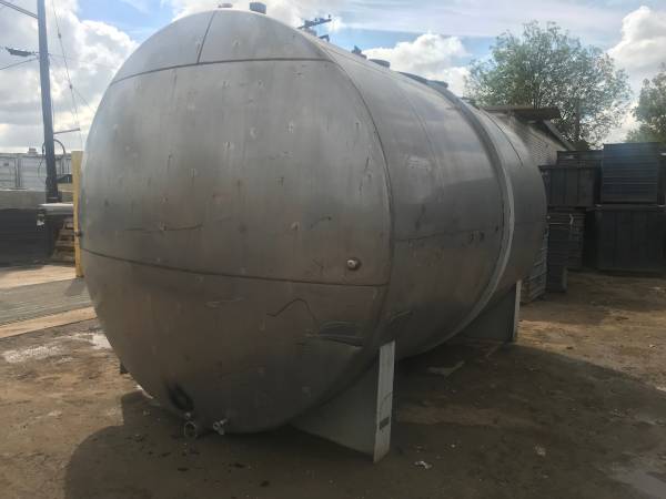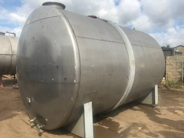STAINLESS STEEL TANK, 304 ALLOY 112" DIA X 172" LONG. A cylindrical tank with a 112" diameter and 172" length holds approximately 10,206 gallons of water.