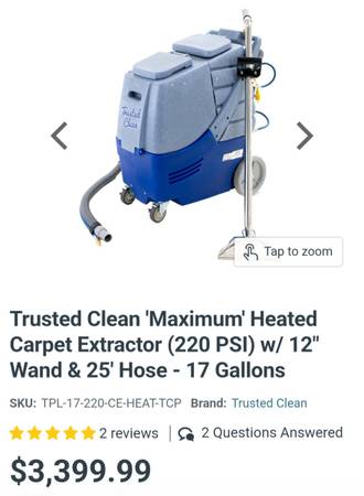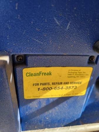 CleanFreak portable Carpet cleaning machine. Lightly used. With maximum heater, 2- 50' extension cords, (heater requires a separate circuit), wand, 25' hoses (suction and solution line), and air mover. $2,499.00. (Just a bit dusty, needs a quick hose down) 1st picture is the brand new price from the dealer.