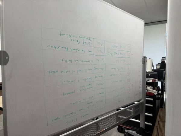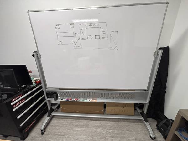 Rolling two-sided mobile whiteboard lets you brainstorm in any meeting room.