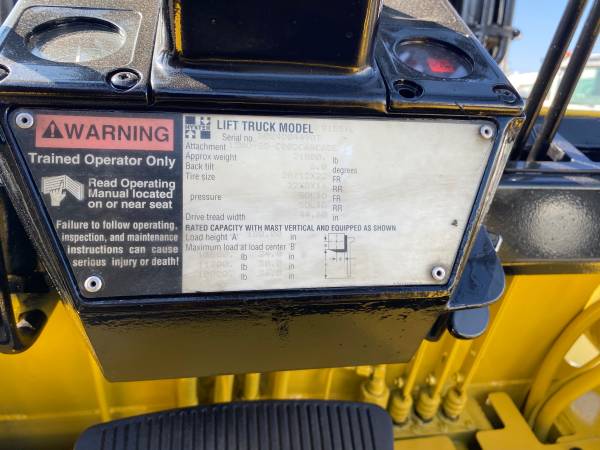 2001 hyster 15,500lbs 3 stage side shift , new 84 forks,Lp, forklift , 7 foot wide carriage auto transmission, 97/180 mast specs