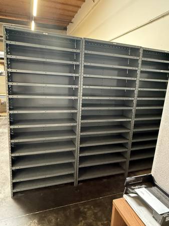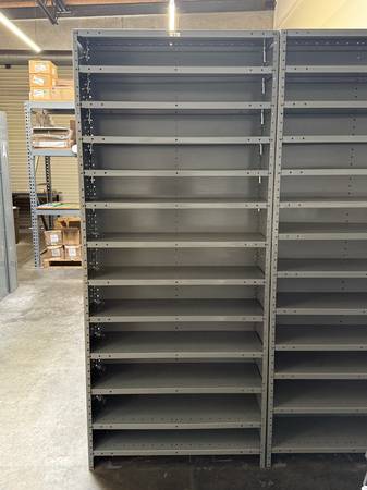 Industrial-grade steel shelving unit in excellent working condition. Adjustable shelves throughout, built for warehouse, commercial, school, or garage storage. Sturdy and reliable.