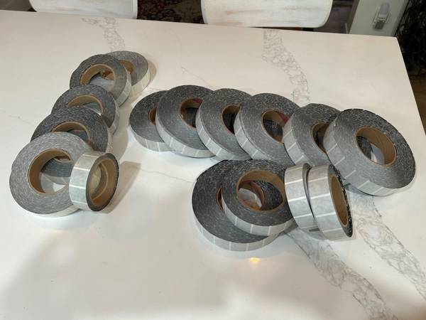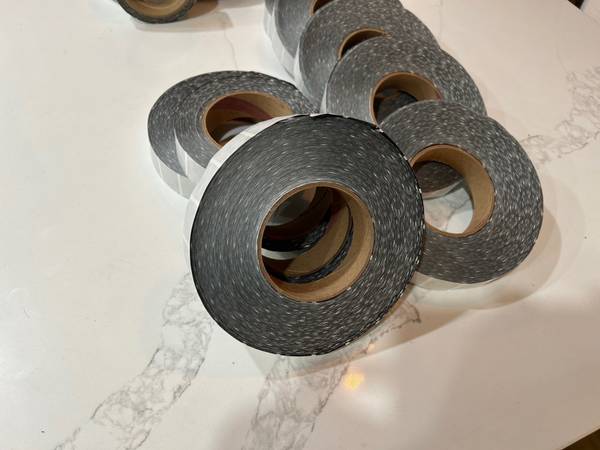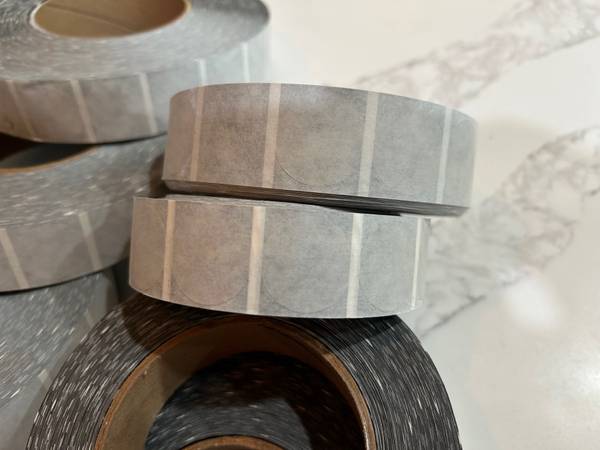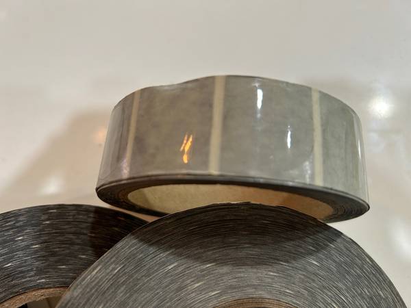 5,000 per roll - Black liner with white timing mark - Paper tabs, these tear nice for easy opening and will not damage the mail piece - No Perforation (For USPS standards) - 3 inch core - Roll diameter is 6.75″ approx. - USPS Approved