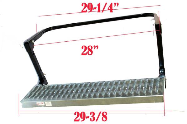 Heavy Duty designed for truck's tire, it creates a convenient, sturdy, non-slip platform for maintenance, cleaning, loading and checking engine. This truck tire service step is constructed by heavy-duty steel with adjustable tire depth and step height that will be your ideal choice. This work perfectly for 24 Foot Truck or bigger Truck. Will not Fit on regular Car. 31" clearance fender requirement.