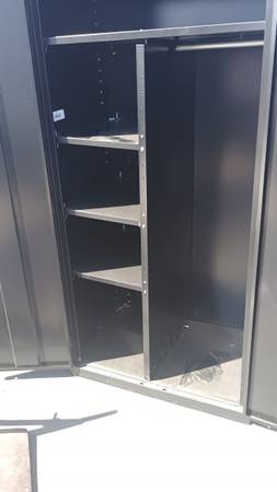 One side has a hanger bar for clothes, the other side has adjustable shelves.