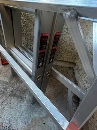 Barely used aluminum folding ladder. https://www.littlegiantladders.com/products/skyscraper-adjustable-ladder