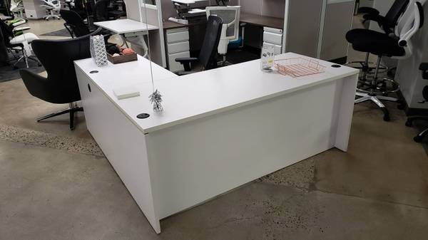 All new desks, benching desks, sit stand desks and other office furniture. Rectangular L Shape U Shape Peninsula Reception Conference Height Adjustable Cubicles Storage Tables Lounge Aerons Leaps...