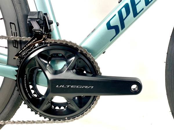 Certified Pre-Owned 2026 Specialized Roubaix SL8 Expert Carbon with Shimano Ultegra Di2 R8150 12 Speed Di2 components, Shimano Ultegra Hydraulic Disc Brakes, Shimano Ultegra R8100 Crankset 50/34t, and Roval C38 Carbon Disc wheels Size: 56cm. This Roubaix SL8 received a 100 point inspection before being listed.