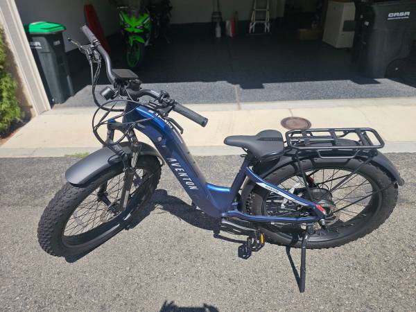 Aventon Aventure 2 blue step through frame with all parts and hardware including 1 battery and battery charger. Only 64 mikes on the bike. Frame size is Aventon Regular.