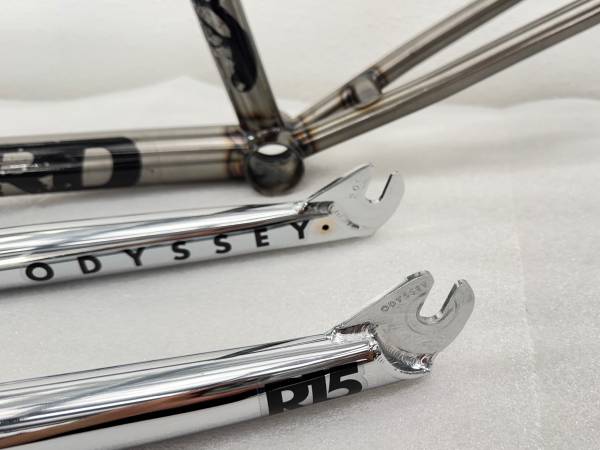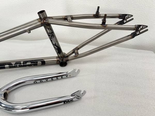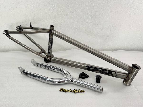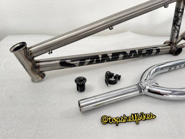 2023 Standard 20" (20.75" tt) 125R gloss cleared frame with Odyssey R15 uncut chrome fork and 27.2mm quick release seat clamp. Super clean frame set, no dents or dings anywhere.
