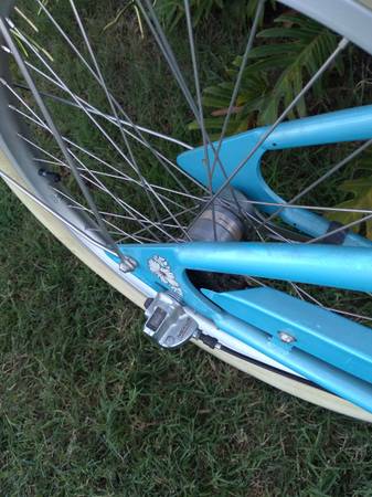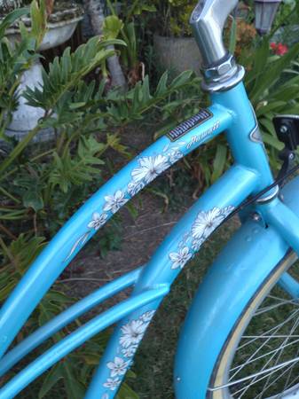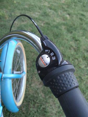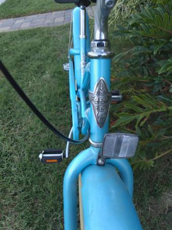 new perfect condition beautiful powder blue pearl paint 24" Electra stepthru Beach cruiser bike with shimano nexus internal hub 3 speed for care free shifts,flower pattern extra soft springer seat,classic looking off-white wall tires and aluminum tubular rims, crome bell 🔔 super clean no rust always stored indoors,rides like a dream! Would make a great gift for someone