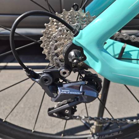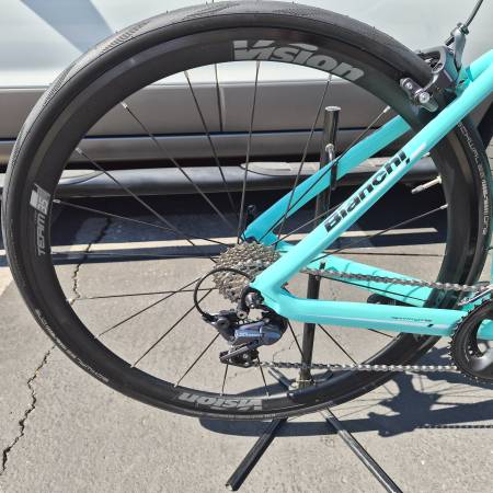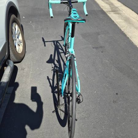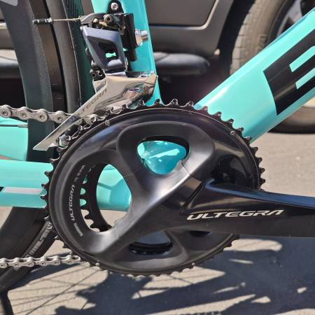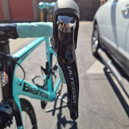 I'm selling a fantastic 2018 Bianchi Aria. I am the original owner and have only ridden it for less than 100 miles. I bought it and shortly after a couple of rides, I was told by my doctor that I have permanent neck and nerve damage that prevents me from riding a bike with this low racing position. So, it's been sitting in my storage unit for the past 7 years. I hate seeing such a great bike just sitting there with no one to ride it. I have finally decided to let go and sell her to a new loving home. It has a complete Shimano 11speed Ultegra 8000 groupset with a 172.5 crankset and 50-36t chainrings. The rear cassette is an 11-30. I had the Fabric saddle, Zipp Stem, Elite cages (with lightweight TiCarbon cage bolts), Bianchi Celeste bar tape (it came with black) and a 36 tooth Absolute Black oval chainring all installed before it ever left the shop. I recently replaced the tires with brand new 700cx28 Schwalbe One tubeless ready tires because the original Vittoria Zaffiros were starting to crack from old age. I'm including a Vision Double Wheel bag and the original saddle. This bike looks brand new and rides great. Thanks for looking. Serious offers, please no low ballers