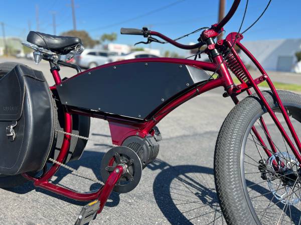 This is a custom built electic bike. Built at Bikecraze, 1 of more than a dozen built. This one is special. Mid drive motor 1500W, 52v 15ah battery. Internal 8 speed, speeds of more than 30mph. This is a passion, not a project. We put special care into this built, we wanted it to be unique, this frame is had several upgrades to get it to the point it can handle the power that this set will offer. Speed of 30 - 35 mph. This is an eyecatching bike. Anyplace you ride it, you will get looks. See at address in ad. this is a cash price out the door, no lowball offers.