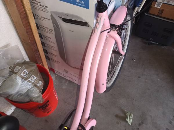 Schwinn pink cruiser bike in NEW condition. This has been ridden 3 times now more. Paid 550.00 PHONE CALLS ONLY DUE TO SCAMMERS I WILL NOT RESPOND TO EMAILS OR TEXT MESSAGES. THANK YPU PRICE IS LOW...