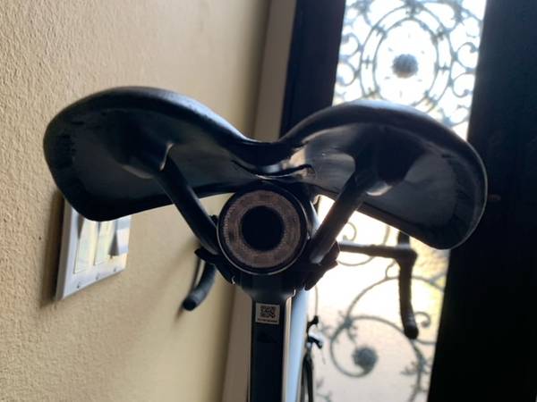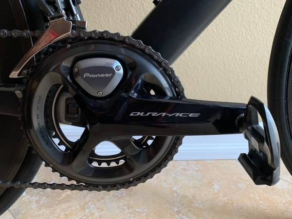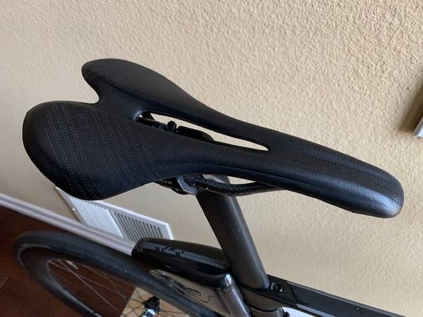 THIS IS A UNIQUE FRAMESET. LAST MODEL YEAR FOR CALIPER BRAKES, FULL LENGTH SET POST AND ONE PIECE HANDLEBAR. THIS FRAMESET IS CONSIDERABLE LESS IN WEIGHT THAN THE DISC BRAKE VERSION. SUPER AERO, FAST ON THE FLATS AND LIGHT ENOUGH FOR SERIOUS HILL CLIMBING. WEIGHED IN AT 16.5 LBS.