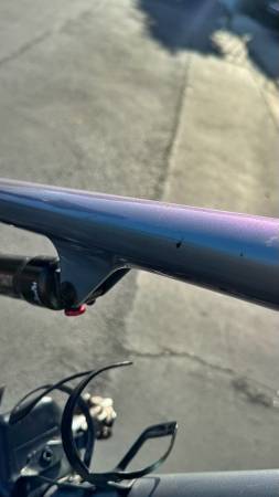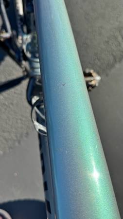 Several rock chips (see photos). I am the second owner. Original owner raced the bike a few times then sold it to me. I put the tires, brakes and front shock on per my preferences.
