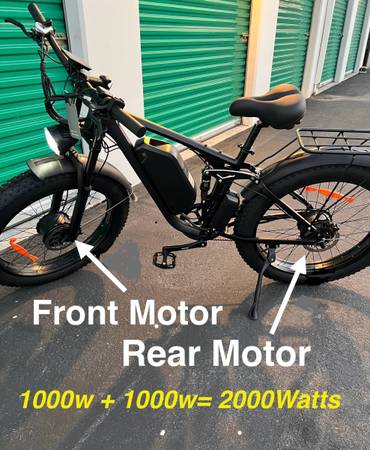2000 Watt (2 x 1000 Watt Motor Each Front/Rear) (3000 Peak Watt) Electric Ebike