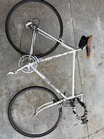 1987 custom built Eddy Merckx bicycle with all Campagnolo "C-Record" components. Met Eddy Merckx at the World Championships in Colorado Springs in 1986. Eddy himself measured me for the frame in his hotel room. Frame was shipped direct from Belgium and bike was put together in Orange County, California. Rode it competitively for a decade. Had the bike custom painted from its original red/white scheme to its current pearl white color in 1990. Has been sitting in garage since. Time to pass this legend on to the next road racer.