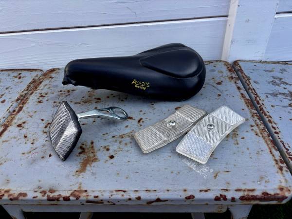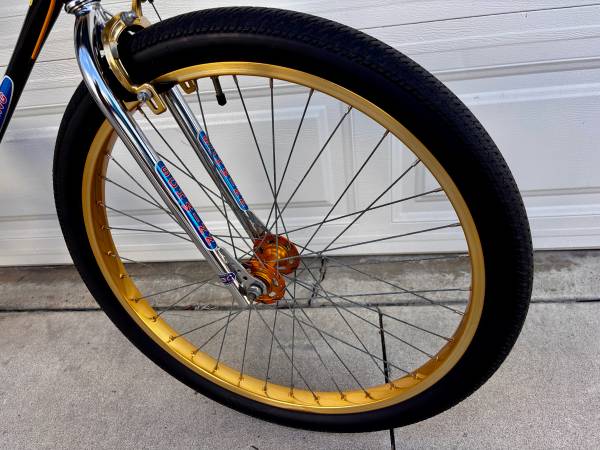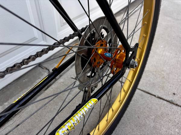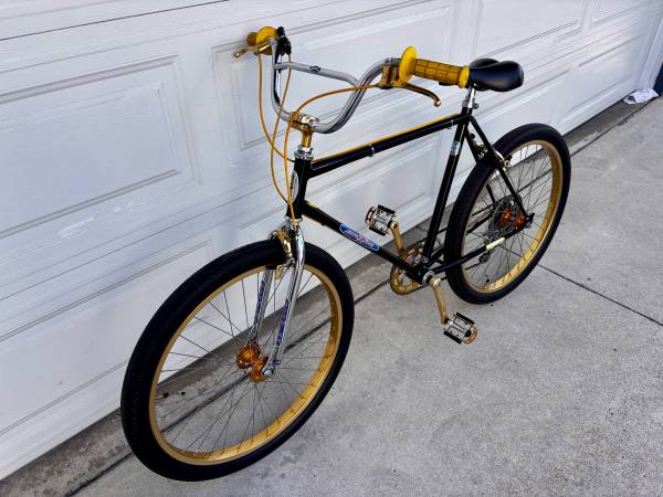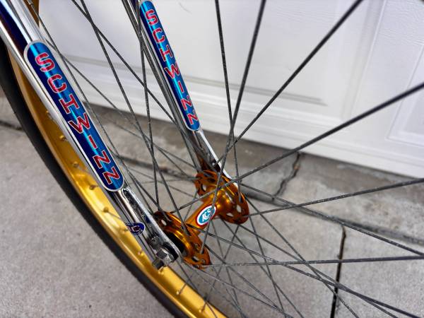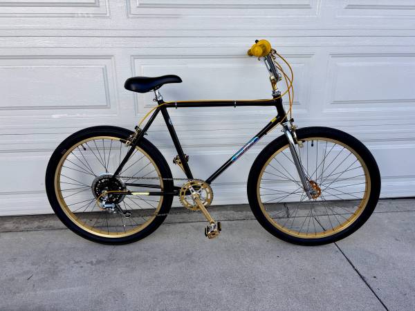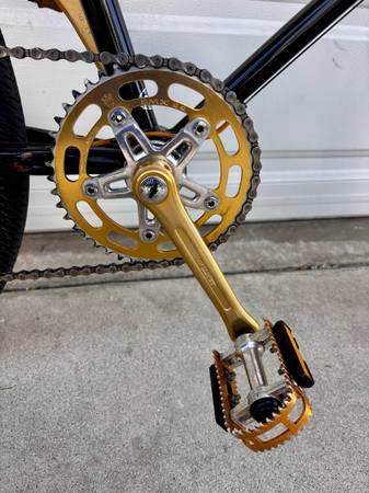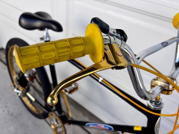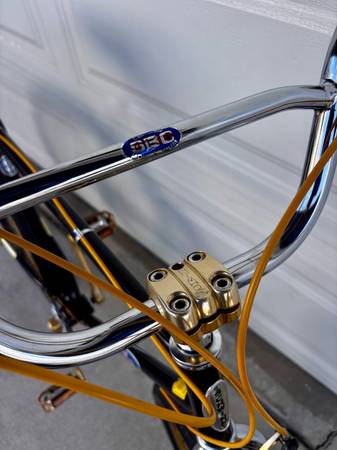 1982 Schwinn King Sting BMX mountain bike bicycle like new unrestored condition. All original paint, gold anodized parts and decals. 26" Ukai aluminum wheels, ACS hubs, Dia-Compe brakes, Team Schwinn 3 piece cranks. See original saddle and reflectors in last picture. The og saddle has fallen apart FYI. Recently had the front and rear axles, bottom bracket bearings and freewheel serviced, also did the head set. New chain and tubes and two Maxxis DTH tires. Cleaned out the seat tube and polished the seat post, front and rear brake pads.