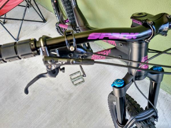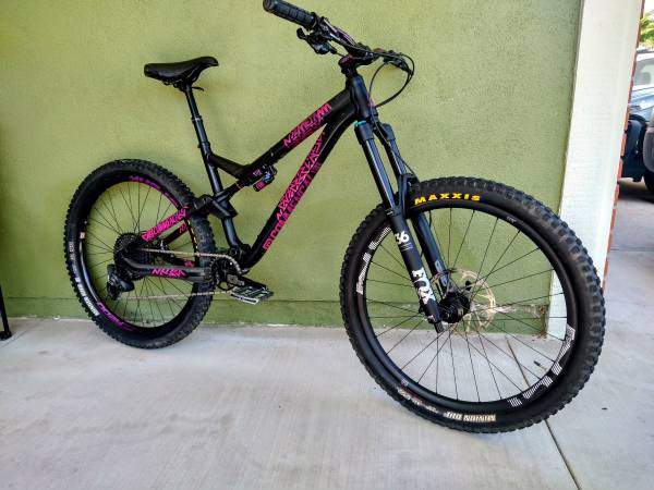 Brand new Fox 36 180mm front shocks($900), Rock Shox Debonair RC3 rear 150mm travel shock, brand new front E*thirteen TRS carbon race front 27.5" wheel($850), rear Spank Spoon 295series 27.5" wheel, Shimano Deore XT front and rear brakes, w/ 180 mm rear rotor and 200mm front rotor, 1x12 drive-train w/ E*thirteen TRS rear cassette, Sram GX Eagle derailleur, TRS cranks, dropper post, Spank Oozy stem/ bars, Tires are Maxxis 2.6" Minion DHF front and 2.5" Minion DHR 27.5" tires. Bulletproof bike that can handle anything!