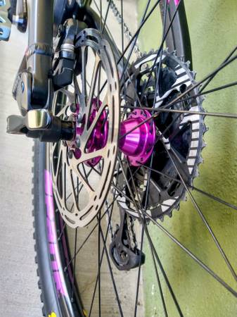 This is a custom build, ton of upgrades-- and this bike shreds as good as it looks!