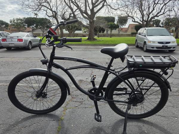 New 26" retrospec electric beach cruiser. Has throttle and pedal assist . 28 mph 60 mi in a charge. Comes with charger cell phone holder and cup holder