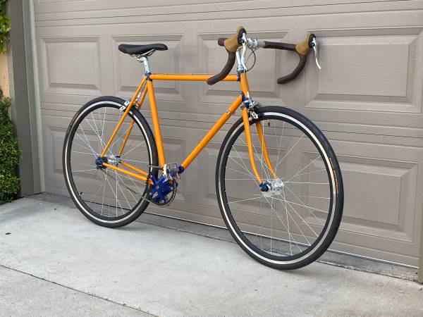 1980s Guibilato Italian steel frame repainted Molteni colors. Horizontal dropouts so can be set up as a single speed or fixed gear. Comes with bottom bracket and headset. Would make a great randonneuring bike. Full bike for $700.