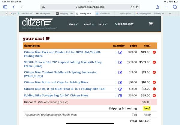 Citizen Bike Rack and Fender Kit for GOTHAM/ SEOUL Folding Bikes x 1- $49.00 (Optional- can be removed)