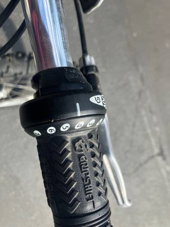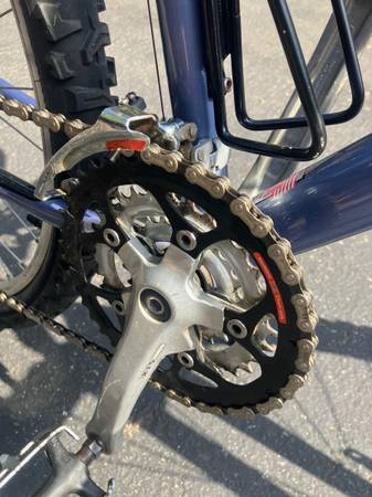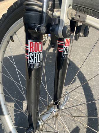 In excellent shape, rarely used Raleigh M-80 mountain bike with 21 speed. It has new Kenda tires, a saddle with working lights, a kickstand, bottle cage, complete set of reflectors and a Rock Shox...