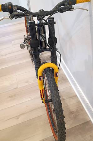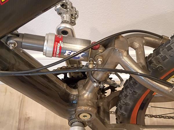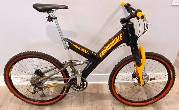 Since I bought it new in 1999, I have kept the bike in a climate-controlled room where I keep other valuable items. I decided to never use the bike because it was so expensive back then, and it looks so beautiful. It has remained at about 68 degrees Fahrenheit year-round and keeps the bike clean and conditioned. It has stayed laid down, so they are no stress on the frame under a thick, breathable, expensive shear bike cover. The bike was checked out in the last few years or so at a well-known bike shop out here called Stage 21, one of Cannondale's top bike shops in the country, and they were blown away that the bike as new condition, let alone maybe the only possible new unused one in the world today. It is a bike for a collector to be honest, because of its remarkable condition.