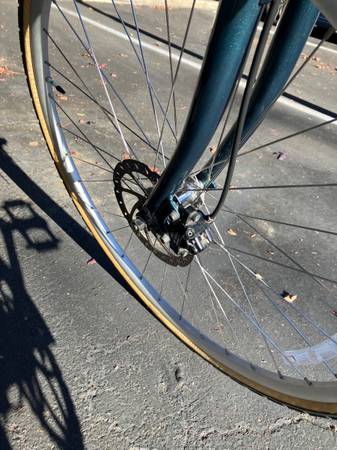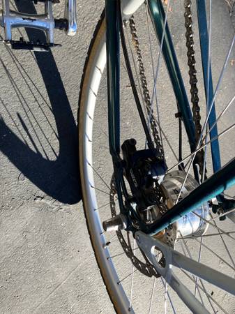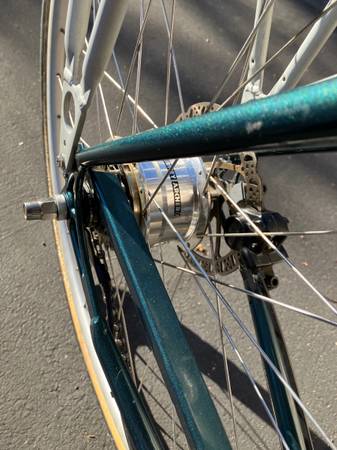 In like new condition Raleigh Haskel city bike with a Sturmey Archer 5 speed hub and hydraulic disk brakes. The bike also has a rear rack, a kick stand and a full set of reflectors. Weight 32.8 lbs...