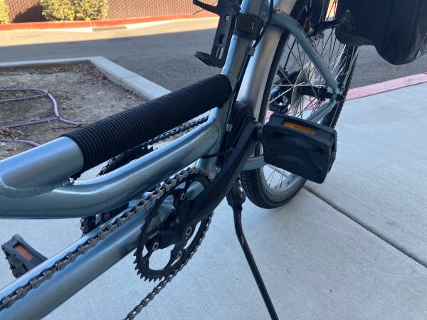 Unbelievable tandem with 24 speed in top condition. This tandem it's upgraded to Shimano Alivio derailleur, new RevoShift shifters, brand new Brooks saddles, suspension post, Sunlite Performance Rubber Technology tires, new Baredine brake pads, complete set of reflectors, front and rear bike racks, rechargeable front light with electronic horn, rechargeable Bike Spark rear light, 3 bike bells, light weight bottle cages, double panniers rear rack bags and more.