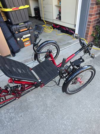 Recumbent Trike, 21 Speed, New Battery installed for pedal and throttle assist, Rear Camera, Phone holder. Trike is made by Cozy trike, ERT-36, New battery is not from Cozy Trike I am 6' 250lbs and...