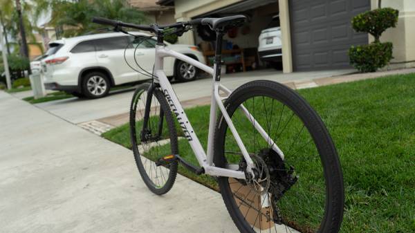 2022 Specialized, Sirrus X 2.0 hybrid bike. Designed for both fitness and light off-road riding. Slightly wider tires at 700-38 in the front and 700-42 in the back. Great for off-road but still narrow enough for on-road fitness and distance workouts. XL Aluminum frame with hydraulic disc brakes, front and back. 1 x 8 drivetrain. 28 pounds total weight.